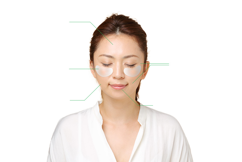 目もとから目じりまでにかけてフィットする形状です。気になる目もとのシワやタルミの部分を大きくカバーすることができます。また、目もとだけでなく、ほうれい線の部分にもお使いいただけます。
